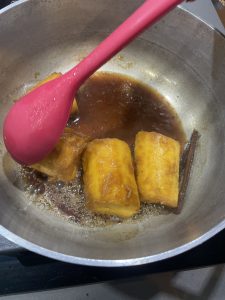 • Asar el queso en cubos en un poco de aceite de oliva con peperonchino y miel.