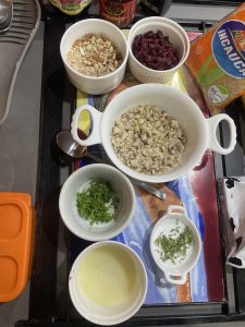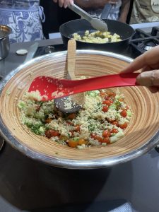 • Agregar la quinoa, la salsa, arándanos secos y el queso asado.