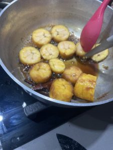 • Partir entre el caldero, los plátanos en rodajas.