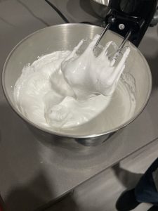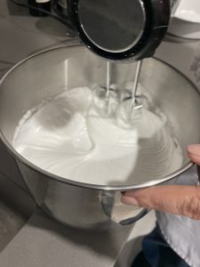• Batir 200 gramos de claras de huevo