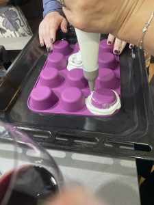 • Pasar el merengue a una manga y armar el merengue en moldes al revés