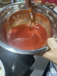 • A la pasta de tomate se le agrega agua, aceite, sal y pimienta hasta que quede bien mojado.