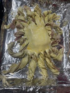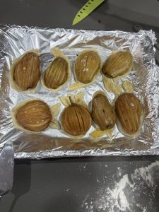 • Cortar alrededor y poner en una lata con papel aluminio , previamente engrasada.