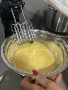 • Batir 6 huevos enteros con el azúcar hasta que esté bien espumosa la mezcla.