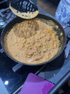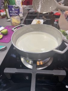 • Cuando esté hirviendo, se echa el queso azul en pedacitos