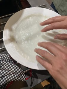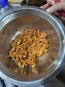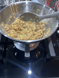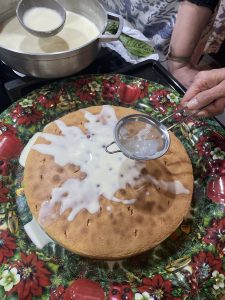• Se debe hacer el día anterior. Se demoró como 2 horas. No hay foto de la desmoldada, porque no alcanzamos.