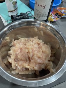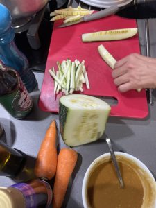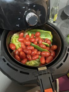 • Cortar zuchinni para rostizar en el air fryer con aceite de oliva . La mitad en rodajas y la mitad en cuadritos.