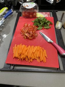 • Cortar los tomates cherry en cuartos