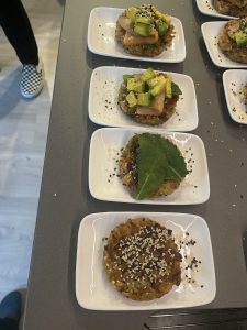• Emplatar : ponerle unas semillas encima de la tortilla, hojas verdes baby, kale por ejemplo, Salmon ahumado, Aguacate en cubitos y semillas y pimienta al final.