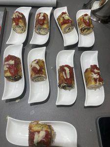 • Hacer los rollos . Queda el gratinado por encima.