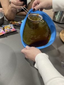 • Echar en la base y las paredes del molde el caramelo pasándolo por un colador.