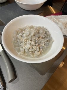 • Picar el aguacate en cubos.