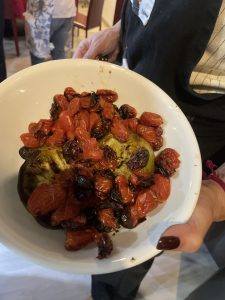 • Picar las aceitunas y remojar en vino tinto.